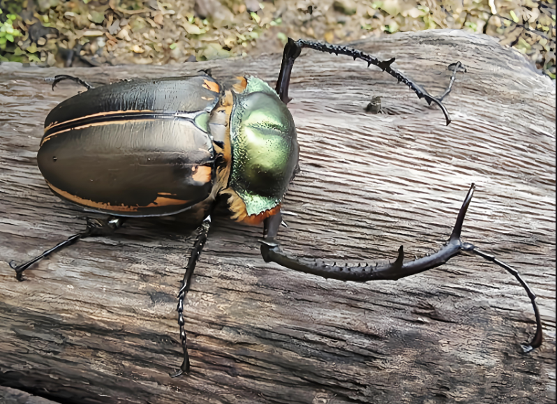 2023年9月8日,江西省景德镇市浮梁县公安局森林分局接110转警称,一只大甲虫飞进胡翔镇一市民家中整个甲虫呈深绿色,它的外壳闪着金属光泽,前肢细长人们怀疑这是一只太阳色圣甲虫。民警第一时间联系了浮梁县野生动物保护中心的工作人员经现场鉴定,这只大甲虫是国家二级保护野生动物阳彩臂金龟。