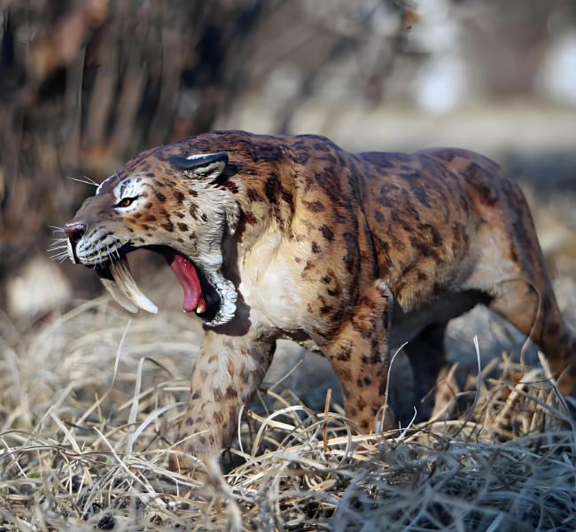 通过研究这一时期之前的一些骨骼化石发现,一些剑齿虎在早期发育过程中遗传了父母的营养不良,成年后没有恢复,导致牙齿磨损和断裂更大,影响了正常捕食。在大约12万年前的更新世晚期,包括致命的剑齿虎在内的许多大型动物在上述因素的叠加下灭绝。然而,关于剑齿虎的具体灭绝过程,学术界仍存在争议例如,包括剑齿虎在内的30多个属处于更新世的最后几百年(时间相对较短)这些动物是同时灭绝的,还是几千年后灭绝的(时间较长)每个物种的逐渐和独立的灭绝是没有定论的。
