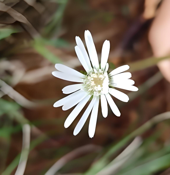 花:花葶单生或有时丛生,通常长15-30厘米,有时可达45厘米,顶部杆状增厚,无苞片,或很少带有钻形苞片,被毛浓密,毛越向顶部越密,下部呈灰白色,中部略生锈,上部呈黄褐色。花头单生于花葶顶端,直径为2.5-4厘米;总苞盘状,开展,长于冠毛和稍短于舌状花冠;总苞片2层,线形或线状披针形,顶端渐细,外层短而窄,背面有锈色绒毛;裸露的花托,蜂窝状;外围雌花2层,外部花冠舌状舌上白,背淡红,倒披针形或匙形,长为花冠筒的数倍,顶端有不明显的3枚细齿,檐部2裂丝状,卷曲,退化雄蕊丝状或有毛,藏于花冠筒内;内雌花的花冠管状,二唇形,外唇大,顶端有3齿,内唇短,2裂,退化雄蕊长圆形,基部有不明显的短尾。中心有许多两性花,冠二唇形,外唇3裂,内唇2裂;花药顶端截平;花柱分枝稍平,顶端钝。
