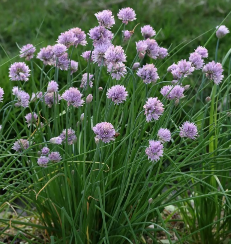 花:圆筒状的花葶,高15-(70 )80) 厘米,中间以下的叶鞘光滑;总苞2裂,宿存;伞形花序为半球形至近球形,有许多密集的花;花梗近等长,1长于花被片.5-3次,基部没有小花苞片;花淡紫色;花被片卵状披针形到披针形,长4片-8(10)毫米,宽2-3毫米,等长,有时外轮稍短,具紫色中脉,先端短尖;花丝等长,等于或略短于花被片,基部连在一起并附着在花被片上结合部分高约1 mm,内轮细丝分离部分为狭长三角形,底边约为外轮底边宽度的1.外轮锥度的5倍;卵巢呈卵圆形,腹缝基部有小凹蜜孔;花柱伸出花被外;柱头点状。