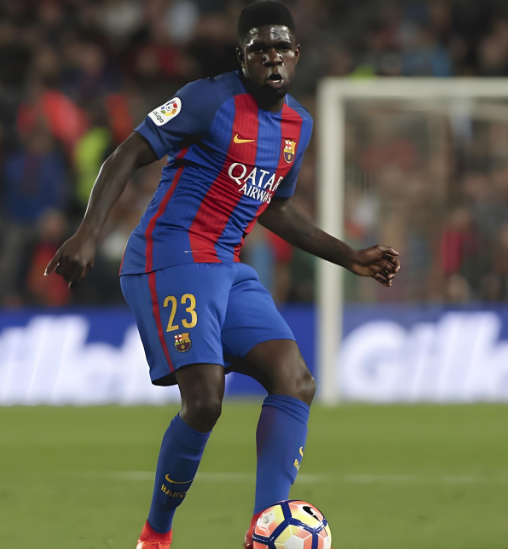 萨穆埃尔·乌姆蒂蒂,全名塞缪尔·伊夫·乌姆蒂蒂(塞缪尔 Yve Umtiti)1993年11月14日出生于喀麦隆的雅温得,他拥有法国、喀麦隆双重国籍,法国足球运动员,全职后卫,现效力于里尔。乌姆蒂蒂在法甲球队里昂青训营首次亮相,并于2012年1月进入一线队。2016年7月,乌姆蒂蒂以2500万欧元的转会费加盟巴萨,随队两夺西甲冠军、三个西班牙国王和国王杯冠军和两次西班牙超级杯冠军。2022年8月,乌姆蒂蒂租借加盟意大利球队莱切。2023年6月,乌姆蒂蒂与巴萨解约。