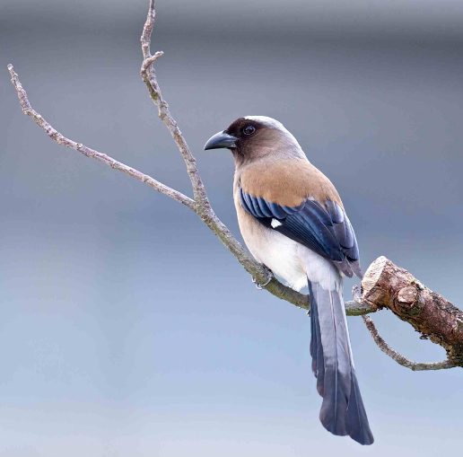 灰树鹊(Taiwan Province tree frog )它是刺槐属的中型鸟类,体长31 ~ 39厘米。头顶至枕骨区域为灰色,头部其余部分下巴和喉咙为深棕色。翅膀是黑色的,带有小而明显的白色翼斑。尾黑色。虹膜红色或红棕色,嘴、脚是黑色和灰色的,性别相似。杂食性,其猎物包括各种无脊椎动物及其幼虫,但也吃一些小型脊椎动物和各种水果和种子,尤其是花树和灌木的花蜜。经常聚集小团体在树枝间跳跃。灰树鹊分布于喜马拉雅尼泊尔、锡金、不丹、孟加拉国、印度、缅甸、中国、泰国、老挝和越南北部。1993年,有人指出,由于海南 据推测,这一物种的数量呈下降趋势。2016年纳入《世界自然保护联盟濒危物种红色名录》(IUCN)——无危(LC)2021年在中国《有重要生态、科学、社会价值的陆生野生动物名录(征求意见稿)》上市。