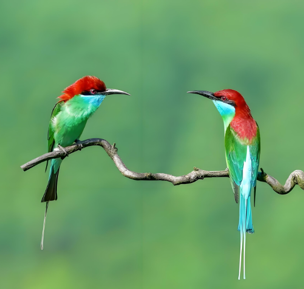 蓝喉蜂虎(Merops viridis),别名红头吃蜂鸟,颜色鲜艳的佛法僧目蜂虎科蜂虎属鸟类。蓝喉蜂虎主要分布在东南亚。分布于中国及华中地区、华南、在华东部分地区为常见的区域性夏候鸟,在海南为留鸟。它是中国分布最广的蜜蜂和虎头鸟。