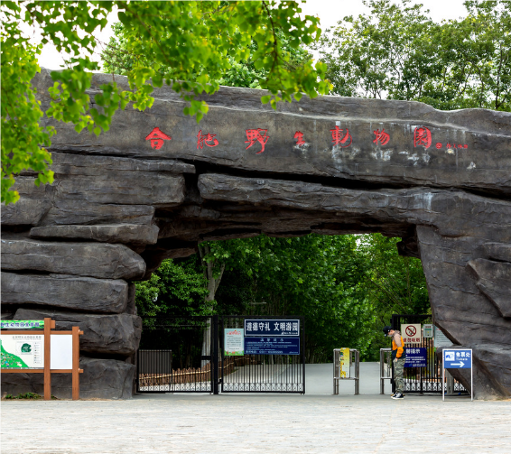 合肥野生动物园整体呈现“L型”布局截至2021年7月27日,动物园占地面积100公顷,园内展出动物120种2000余只(只)其中有来自国外的长颈鹿、河马、黑猩猩、斑马、火烈鸟等,还拥有中国一级保护动物大熊猫、东北虎、金钱豹、麋鹿、丹顶鹤等。园区由大熊猫馆、小熊猫馆、食草动物放养区、猛兽放养区、孔雀园、松鼠猴园、日本猴园、百鸟园、黑猩猩馆、河马馆、火烈鸟花园和海狮表演场。