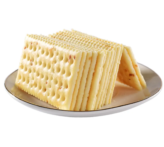 苏打饼干,又称梳打饼干,是一种由小麦面粉制成的饼干、由小苏打和黄油制成的咸甜饼干。制作方法是在一部分小麦粉中加入酵母制成面团,剩余的小麦粉经过长时间发酵后加入,再经过短时间发酵后成型。这种饼干烘烤后形成一层胶化层,可以中和胃酸、抑制胃酸分泌,保护胃黏膜。苏打饼干钠盐和脂肪含量高过量摄入容易增加肾脏负担,使血压升高,导致或加重腹泻。