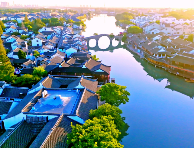 苍苍九峰北麓,茫茫淀山湖之滨,有块47平方公里成折扇形的小镇,镶嵌在湖光山色之中,似明珠闪闪发光,这就是典型的江南鱼米之乡、闻名遐迩的千年古镇朱家角。