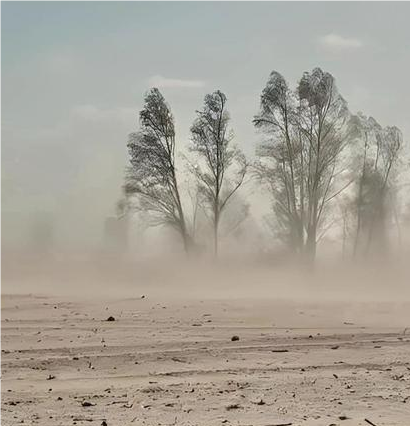 环境破坏:沙尘暴会导致土地沙化,造成土地资源减少,草地和农田风蚀严重,加速水土流失,导致耕地沙化、草地退化。粉尘覆盖植物叶片,影响正常光合作用,导致作物减产,严重倒伏断枝,死苗落花。