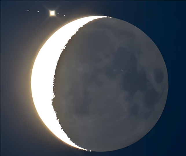 2022年1月6日木星和新月近距离“相依相伴”,竞放光芒的精彩画面
