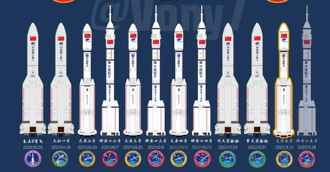 空间站的一个核心舱和两个实验舱,将由大型运载火箭长征五号B发射;货运飞船和载人飞船增加则由中型运载火箭长征七号发射。