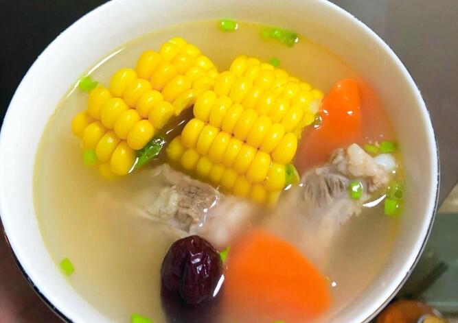 3、另外准备一个砂锅,把排骨倒进来,加入足量的开水,大火煮开转小火,慢炖半个小时,接着加入玉米、胡萝卜、红枣和枸杞,再炖半个小时。