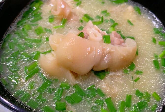 1、准备两个猪蹄,自己没有工具,让商家帮忙处理好,剁成小块,一个猪蹄剁4-5块大小。