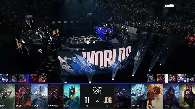 半决赛2022年10月30日,2022英雄联盟全球总决赛半决赛首场对决由LPL冠军JDG战队对上全球总决赛三冠王T1战队,T1战队3-1淘汰了JDG战队,时隔五年再度杀入全球总决赛冠亚决赛。