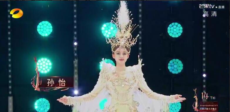 孙怡表演的节目名为中华风尚秀《中国》,是由舞者李响以一曲国风舞开场,随后孙怡以一身华贵的礼服亮相。因为造型实在太过华丽,让很多人误以为是“金鹰女神”。其实这不过是孙怡在风尚秀上的走秀。与她同台的还有不少模特——
