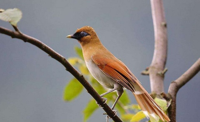 棕噪鹛,又称作棕画眉、大眼吊或山道士,是雀形目噪鹛科中的一种鸟类,隶属于黑喉噪鹛属。这一物种主要栖息于中国长江以南的山地常绿阔叶林中,是一个典型的地域性特有种。其分布区域遍及云南、四川、贵州、湖北、江西、浙江、福建等省份。该鸟类的体型适中,体长介于25至28厘米,体重在80至100克之间。棕噪鹛的雌雄两性在形态上几乎没有差异。它们的体色为赭红褐色,头顶有显著的黑色鳞状斑。喙端呈现黄色或黄绿色,眼周裸露部分有明显的蓝色。鼻羽、耳羽上端以及颏部为黑色,后颈有淡黑色的窄羽缘。翅膀外侧的覆羽为棕褐色,飞羽的外翈是草黄色,基部呈棕栗色,内翈则逐渐过渡为黑褐色,直至尾部颜色变淡。中间的尾羽为棕栗色。喉部和上胸部呈淡赭红褐色,下胸部、腹部和臀部为灰色。虹膜为灰褐色,脚部颜色为蓝灰色或铅褐色,趾部也是铅褐色,爪子呈黄色。