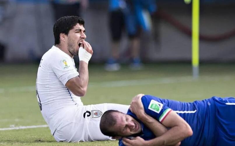 2014年巴西世界杯小组赛D组第3轮,乌拉圭1-0击败意大利,自己晋级16强同时送对手回家。在比赛的第八十分钟,苏亚雷斯跟基耶利尼纠缠,随后苏牙张大嘴巴咬了椰子的肩膀,这一画面震惊世界,舌尖上的基耶利尼,成为世界杯历史上的一道名菜。