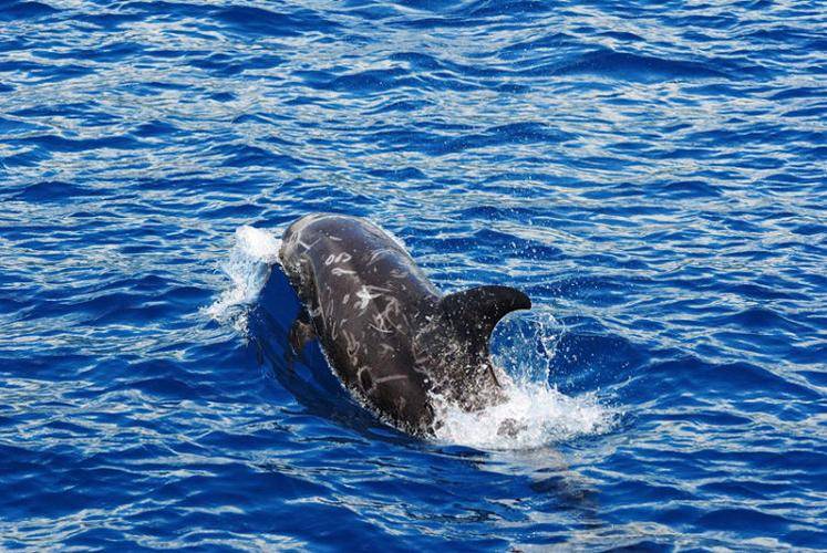 攻击行为:在攻击其他物种时,里氏海豚会采用撕咬、拍打鳍或用身体撞击等策略。