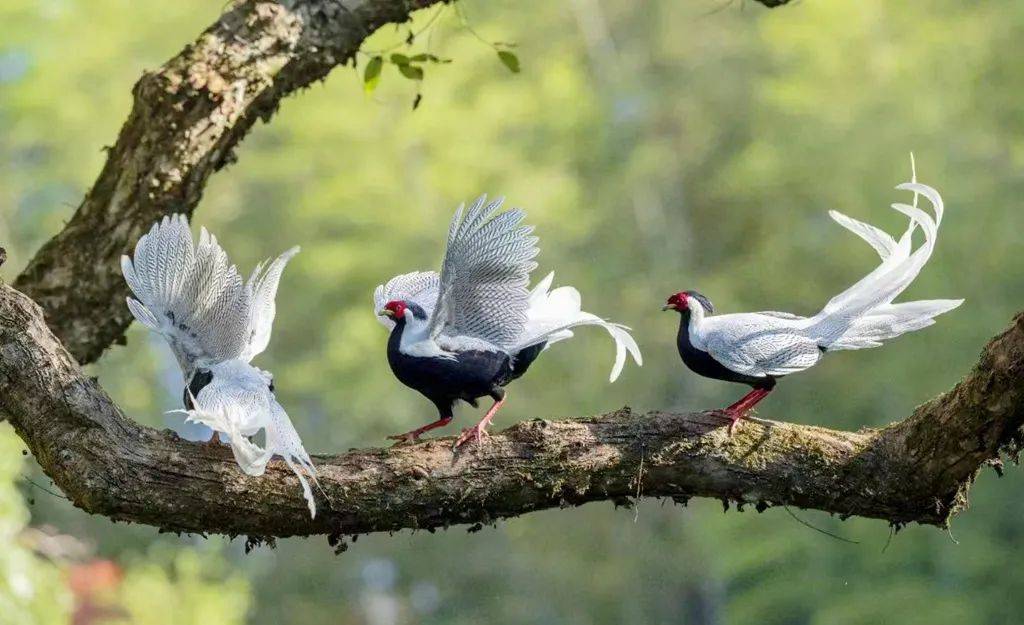 2024年3月5日,贵阳阿哈湖国家湿地公园的数据收集人员通过安装的相机成功拍摄到一只白鹇;8日傍晚,黄岩大寺基未来国有林场的智慧监控系统再次捕捉到两只白鹇的生活画面。