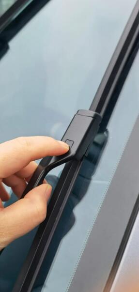 3、将雨刮器拉起来,用手指在清洁后的橡胶雨刷上摸一摸,检查是否有损坏以及橡胶叶片的弹性。若叶片老化、硬化,出现裂纹,则此雨刮器不合格。
