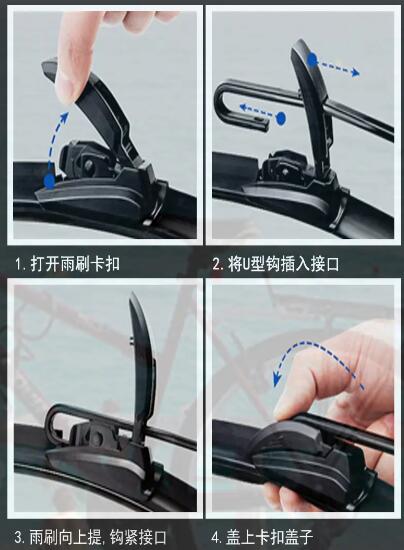 1、先弄清楚您的车用的是哪种规格的雨刮器,可参考随车手册,看清上面注明的雨刮器型号。