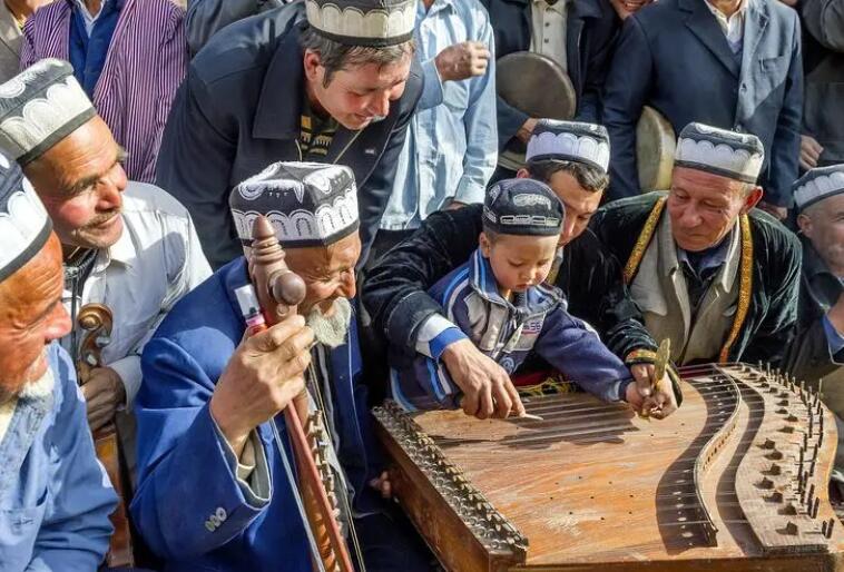 民间麦西热甫是维吾尔人在节日、婚礼、庆典时时常举办的民俗活动,孩童们从小就会接触卡龙琴等乐器的演奏。其中对乐器演奏感兴趣的孩子会模仿和观察有经验乐师的演奏技巧,也会在演奏间隙向老艺人们请教学习。