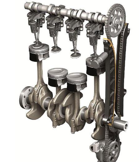 配气机构的传动凸轮轴由内燃机的曲轴驱动,它们之间的传动机构是根据凸轮轴在内燃机上的布置来确定的。下凸轮轴由曲轴通过齿轮驱动,上凸轮轴由曲轴通过链条或轴驱动。采用无声链或齿形带传动,可以使传动基本无声。