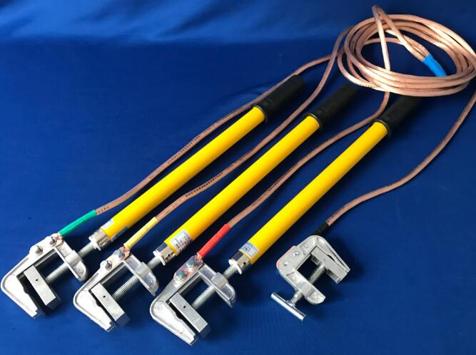 4)接地软铜线有分相式和组合式,接地棒有平口式和双弹簧钩式线夹。