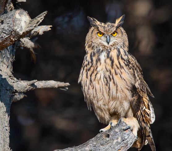 雕鸮(Label )学名:Bubo Bubo),又称恨狐、角鸱(冀o ch)这只大猫头鹰是一只鸟猫头鹰(chī xiāo)科雕鸮属动物。在中国分布的31种猫头鹰中,雕鸮是最大的一种。秃鹫的雌性比雄性略大。它有明显的脸和耳羽,脸是浅棕色,眼睛先有白须;整个上半身呈褐色,不规则,下半身有粗大的深褐色纵条纹;尾羽两侧及下方有浅棕色波浪纹,尾羽腹面有数个深色横斑。