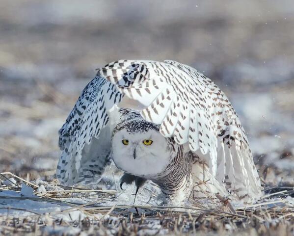 雪鸮在黄昏时很活跃。雪鸮大部分时间都在平坦或略高的地面上寻找猎物。