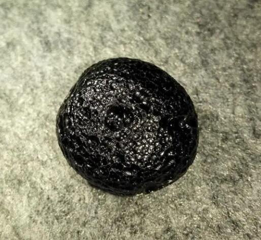 雷公墨一般是黑墨、油漆是黑色的,标本的边缘因为薄而呈半透明的棕色。玻璃光泽,贝壳状断口,全玻璃态,即使在电子显微镜下,它也表现出无定形和断裂的特征。个体大小不一,体重不等,一般几克到几十克不等,有的达到100多克。样品是新鲜的,没有搬运和磨损的痕迹。