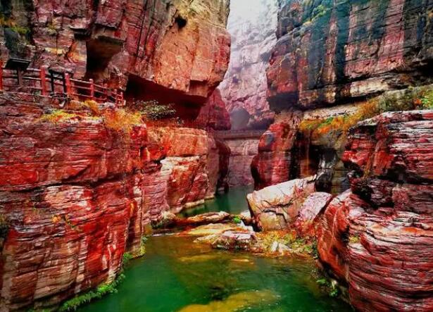 红石峡,云台山红石峡是云台山景点的精华,位于河南省焦作市修武县云台山景区内,位于子房湖南,峡内夏日凉爽宜人,隆冬青苔卉莳草翠,故称温盘峪。红石峡集泉瀑溪潭涧诸景于一谷,融雄险奇幽诸美于一体,被风景园林专家称赞为“自然界山水精品廊”。