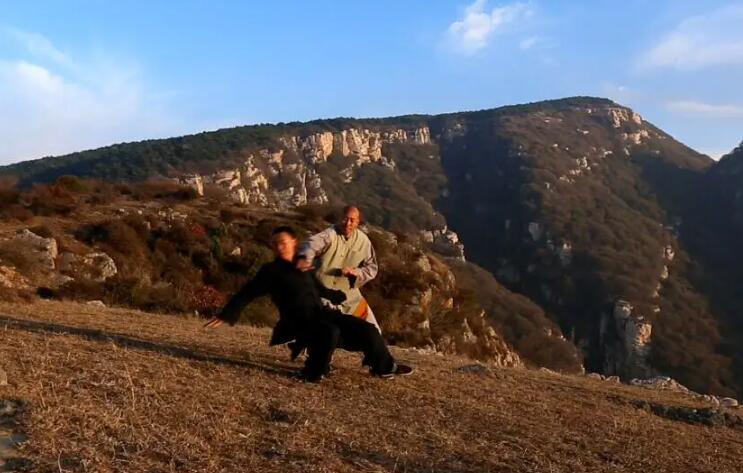 古轮进退:由外而内进退之意。其势如车轮般进退,不停。套路为双手握拳拳法。两掌由外向内进退时用左掌和右拳打出,其招数如车轮般进退时用右掌打出。