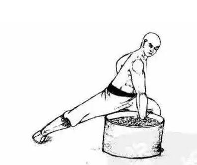 用土或铁砂装满广口容器,五指快速垂直插入容器内,双手交替反复练习长期练习后,手指的硬度和力量会增加。