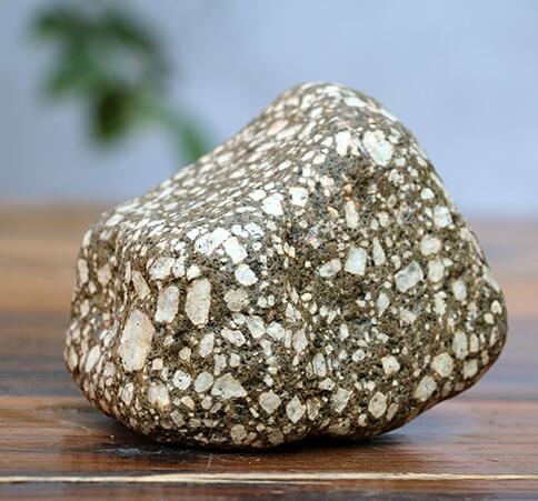 麦饭石主要为石英斑岩,呈斑状结构。岩石呈不规则致密团块状。表面不平整,有黄白色、黄褐色或灰白色、暗灰黑色的斑点状花纹;明显可见灰白色大小不等的长石和石英的颗粒;后生矿物则分布在长石、石英、云母、角闪石等原生矿的表面及其晶粒之间,并可局部集中发育在岩石裂隙中。原岩石质坚硬,因蚀变、风化而变疏松。麦饭石还具有多孔性海绵状的特殊结构,表面积十分巨大,有强烈的静电引力,因而对杂质、重金属离子、细菌、农药残余物具有强吸附作用。