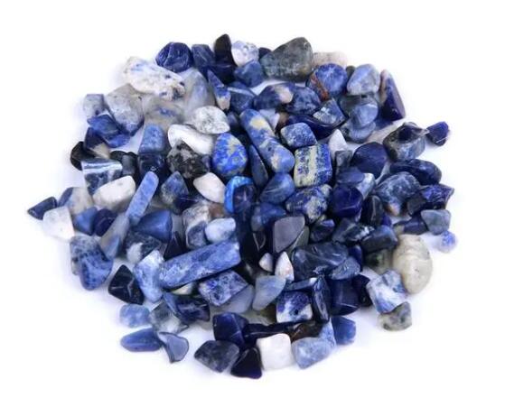 方钠石通常含有白色矿物斑块或纹理,很少含有黄铁矿包裹体;青金石密度2.75g/立方厘米左右,高于方钠石;方钠石通常具有粗糙的结构,而青金石具有精细的结构。