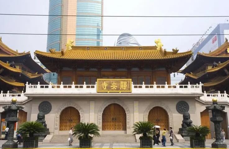 静安寺是中国著名佛教寺院,也是集佛教、民俗于一体的人文景观,位于中国上海市南京西路1686号。创建于三国时期吴国赤乌十年(公元247年),后经历代修整,至唐代称永泰禅寺,至北宋时期,方称静安寺。静安寺的整体布局上,采用传统的门、堂、廊结合的建筑风格。整体成前寺后塔的格局,大雄宝殿、天王殿、三圣殿构成寺院的主要建筑。整座建筑由南到北沿着中轴线建造,中轴线上分布着钟楼鼓楼、大雄宝殿、法堂等建筑。静安寺供奉着中国最大的一座玉佛像——释迦牟尼坐像,躯重11吨,高3.78米,宽2.6米。主殿还供奉一尊15吨的纯银铸造的释迦牟尼佛像。