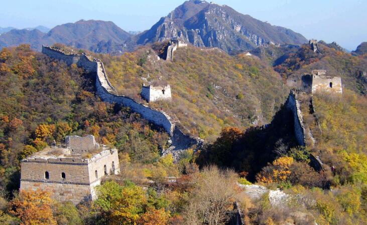 箭扣长城建于明朝1368年它位于京郊怀柔区西北部的八道河乡,西距慕田峪长城10公里,西临嘉峪关,东临山海关,西南临八达岭、居庸关距怀柔城区约30公里,是明代万里长城的险段之一。它海拔1141米,长约22公里。