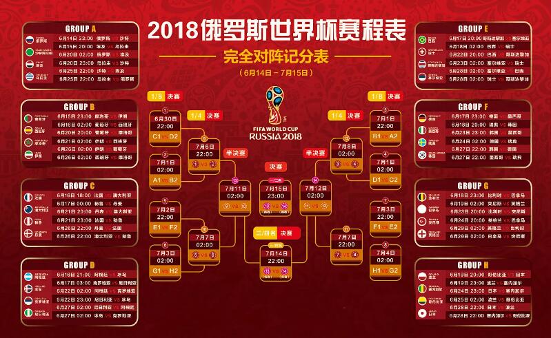 2018年俄罗斯世界杯赛程俄罗斯世界杯赛程于2018年6月14日至7月15日在俄罗斯境内11座城市中的12座球场内进行,一共有32支球队参与角逐。这是世界杯首次在俄罗斯举行,亦是世界杯首次在东欧国家举行。