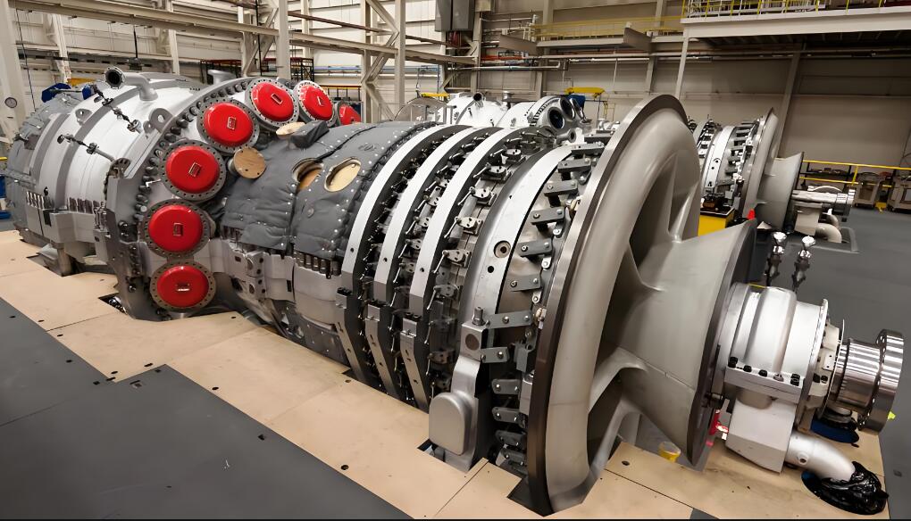 压气机:燃气轮机中的压缩机部件通常使用动态压缩机,包括轴流式压缩机、离心式和混合式三种。它的作用是吸入并压缩大气中的空气,然后向燃烧室提供高压空气。因此,通常要求具有高压缩效率、单级压缩比大、气体流量大、特性可以与涡轮机相匹配、工况稳定,面积广,能很好地防止浪涌。
