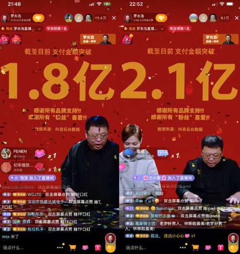 12月18日,罗永浩作为“永不落幕的南博会”在线展好物推广大使,在抖音直播间带货薄荷糖、酸角糕、鲜花饼等南博会产品,销售额超过50万元,观看人数超过500万。