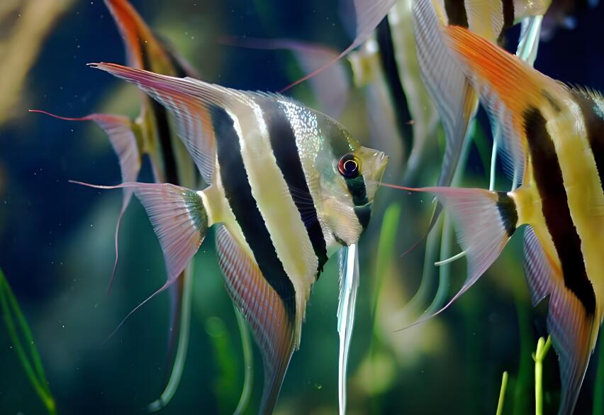 栖息地:横纹神仙鱼生活在河流流域,那里有沉水植物的根和一些水下植被,这使得它很容易躲避捕食者。横纹神仙鱼在柔软和富含氧气的水域中更常见,这些水域的水温一般在27-30°C之间,pH值约为6.5。