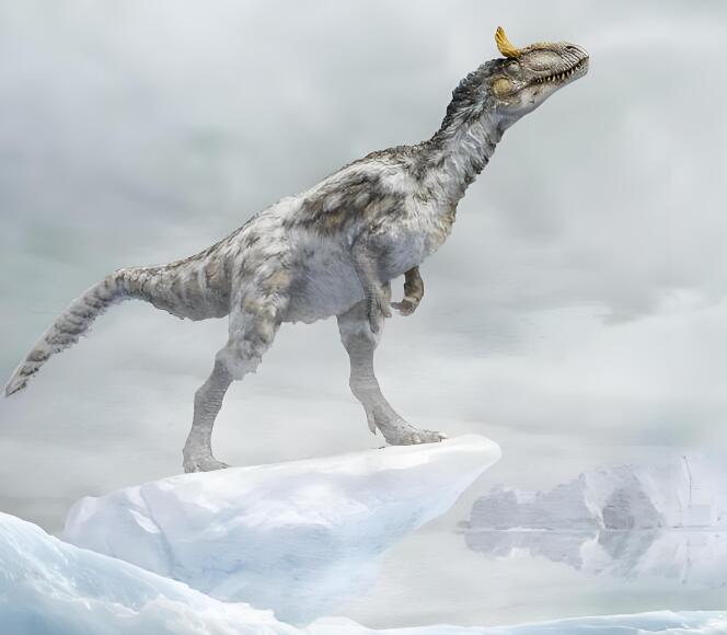 冰脊龙是一种大型对称的兽脚类恐龙,是侏罗纪早期已知最大的兽脚类恐龙,也是南极洲的顶级捕食者。它的身体细长,估计长度约为6.5米,估计重量为465公斤。因为标本个体可能未成年,成年个体会比较大。Icebrodon的头骨又高又窄,与其余的骨头相连。头骨长约65厘米。它有一个奇特的头顶,从眼睛上方延伸出来,垂直于头骨并呈扇形展开。王冠很薄,边缘呈波浪形,形成了类似蓬皮杜发型的独特凸起,因此它得到了“猫王”的绰号。这个牙冠是颅骨的延伸,靠近泪管,并与两侧从眼眶升起的眶角骨融合。虽然其他兽脚亚目恐龙,如Monosaurus也有冠,但它们的冠通常是垂直的,不像冰脊龙的冠是水平的。