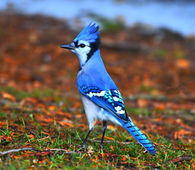 冠蓝松鸦的内陆亚种Cyanocitta cristata cyanotephra体型中等,背部羽毛呈深蓝色,与白色腹部形成鲜明对比。它分布在美国内陆,其活动范围与北方亚种一致。