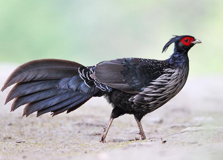 黑鹇,又名雉鸡、长尾雉,属于雉科雉鸡属。分布于印度、缅甸、泰国、尼泊尔和中国,栖息于海拔1000-3000米的山地森林、竹林和林草中。这只黑鹇长约56厘米,重约800克。属于大型鸡。雄型为蓝黑色,只有下背部、腰部和尾部覆有白色羽毛;头上有长而直立的羽冠。雌鸟是棕色的,有浅灰色的羽毛。
