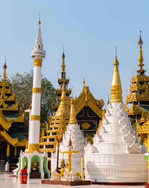 大金塔是仰光最具代表性的景点,塔高110米,坐落于市内一座小山上,表面涂有72吨的黄金,塔顶由近3000克拉的宝石镶嵌而成。整个建筑群非常雄伟,在阳光的照射下显得夺目而耀眼。传说是保存有佛祖八根头发的商人两兄弟建成,已有2500年的历史。