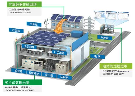 光伏系统是一种集成化能源系统中各种设备(包括光伏电站系统)与基础设施进行互动以实现发电或供热的系统。电站系统是将发电系统集中起来并与电网进行协调控制是光伏系统效率的核心环节之一:电力来自光伏电站发电并将电能直接转换成电能或输送至用户。光伏发电系统主要包括电站系统及设备、辅助系统、电站系统组成与安装、电气系统组成及安装后调试等服务四部分构成。