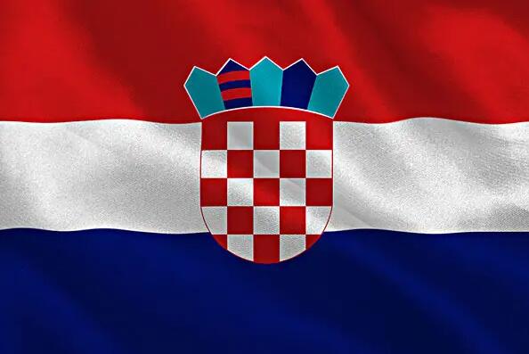 克罗地亚国旗呈长方形,长宽之比为2:1。旗面由三个平行相等的横长方形组成,自上而下分别为红、白、蓝三色。旗面中间绘有国徽。克罗地亚于1991年6月25日宣布脱离原南斯拉夫独立,新国旗是1990年12月22日开始启用的。