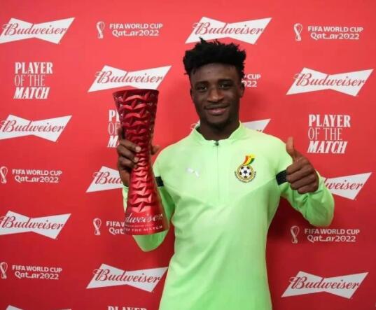 2022年11月28日,在卡塔尔世界杯小组赛H组第二轮比赛中,加纳队以3-2战胜韩国队,库杜斯在本场比赛34′打入1球,68′打入第2球,获本场最佳球员。