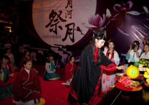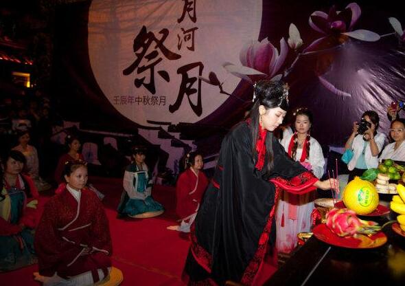 《礼记》早有记载“秋暮夕月”,意为拜祭月神,逢此时则要举行 迎寒和祭月,设香案。到了周代,每逢中秋夜都要举行迎寒和祭月。设大香案,摆上月饼、西瓜、苹果、红枣、李子、葡萄等祭品,其中月饼和西瓜是绝对不能少的,西瓜还要切成莲花状。在月下,将月亮神像放在月亮的那个方向,红烛高燃,全家人依次拜祭月亮,然后由当家主妇切开团圆月饼。切的人预先算好全家共有多少人,在家的,在外地的,都要算在一起,不能切多也不能切少,大小要一样。在少数民族中,同样盛行祭月的风习。