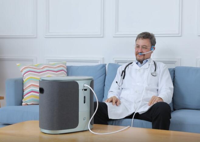 7、按下供氧启动按钮,绿色指示灯亮起,供氧机开始进入工作状态;