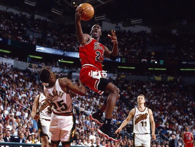 1998年6月14日,总决赛6场比赛的最后时刻,又是芝加哥公牛对犹他爵士。乔丹设法从马龙手中抢到球,在甩开防守他的卡斯尔后,他投进了制胜一球。球命中后,芝加哥公牛队第二次、八年内第六次获得三连冠。